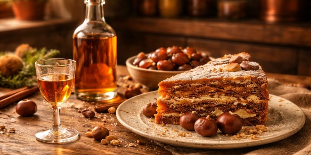 La chataigne est un pilier des cuisines rurales depuis des siècles : on la mangeait rôtie, bouillie, en farine, en soupe… et forcément, on a fini par la mettre en bouteille. Dans plusieurs régions où le chataignier est roi, on trouve des traditions de macérations, d’eaux-de-vie aromatisées et de liqueurs “de maison”.