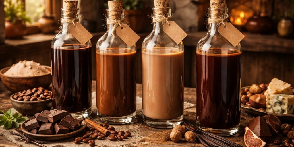 Les liqueurs gourmandes (cacao, café, vanille, noisette…) s’inscrivent dans une tradition de “digestifs” servis après le repas. Elles ont aussi un côté pâtissier : on y retrouve des notes de crème, de caramel, de chocolat fondu… La liqueur de chocolat maison s’inspire de cet esprit-là, mais avec une simplicité qui la rend accessible à tous.