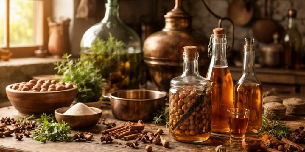 Selon les pays et les familles, on croise des versions plus sèches (peu sucrées, très aromatiques), et des versions dessert (plus sirupeuses, presque crémeuses). La version que je vous propose ici vise l’équilibre : parfum intense, rondeur, et une force alcoolique “liqueur” cohérente.