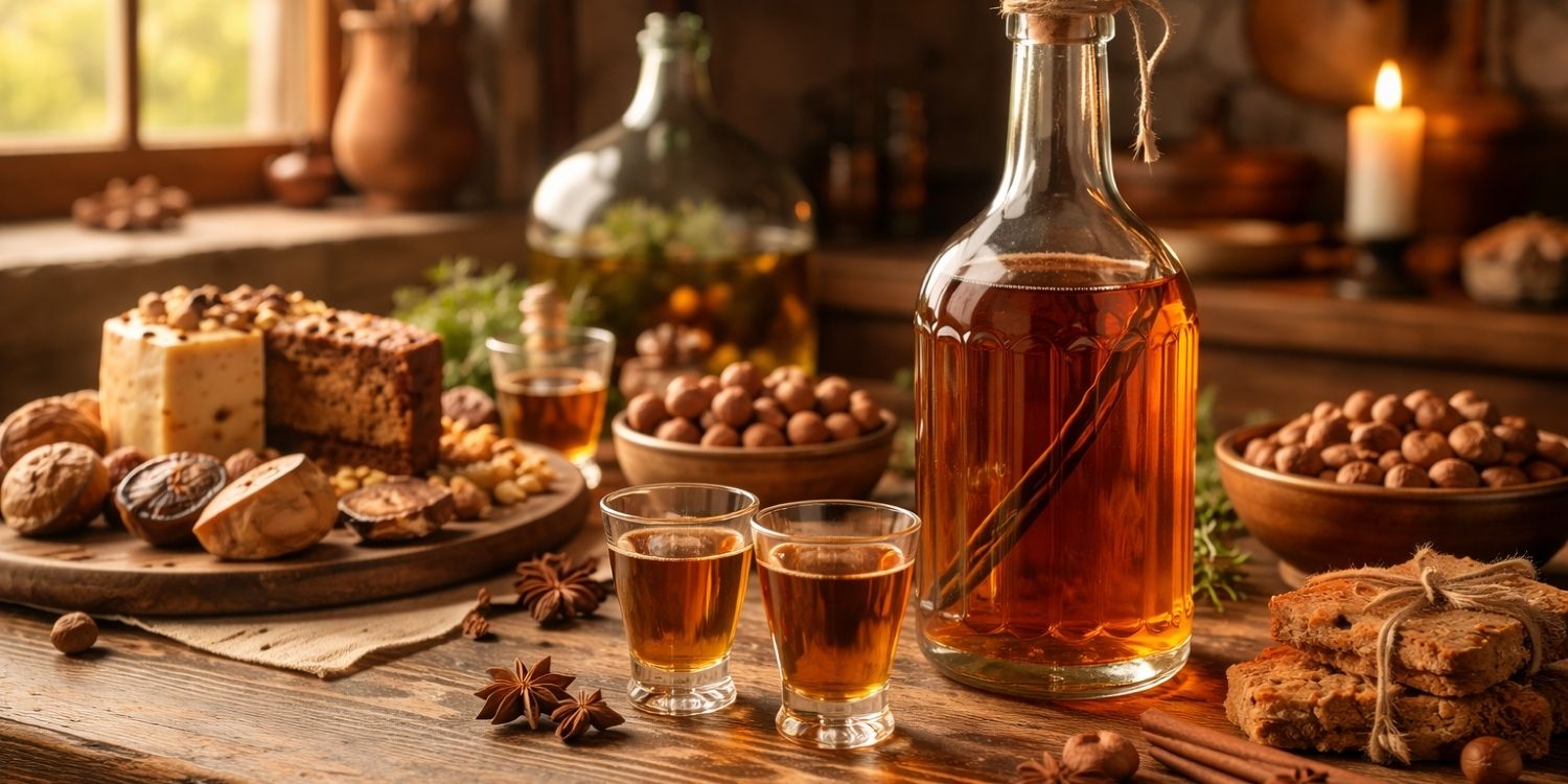 Les liqueurs “de fruits secs” existent depuis longtemps dans les traditions domestiques : on infuse, on sucre, on filtre, on met en bouteille. La noisette, elle, est très présente dans de nombreuses régions d’Europe, donc on la retrouve naturellement dans des préparations alcoolisées, entre digestifs rustiques et recettes plus gourmandes.