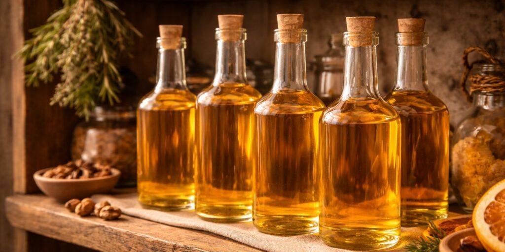 Pour l’alcool, la vodka fait très bien le travail si vous voulez une option simple. Si vous trouvez un alcool neutre plus fort (90–96°), vous obtiendrez souvent une extraction plus intense des huiles essentielles… mais vous devrez diluer plus, donc bien maîtriser vos volumes.