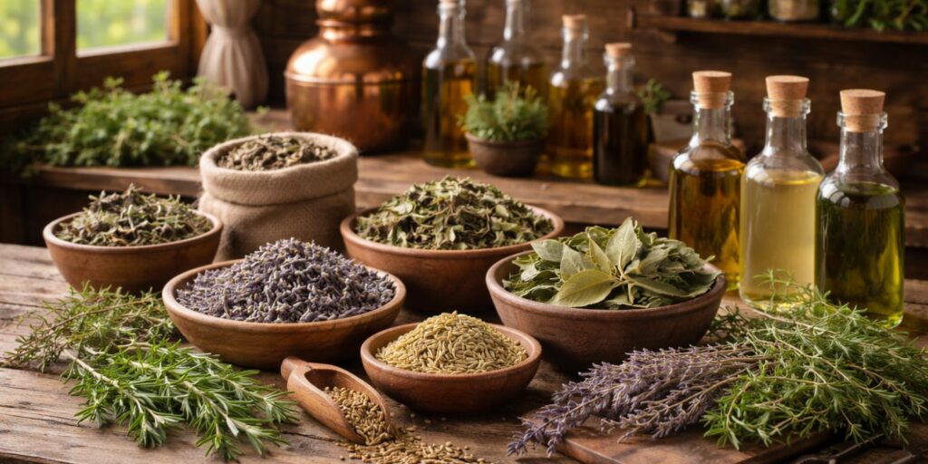 Les herbes sèches sont très utilisées pour leur stabilité et leur concentration aromatique. Elles permettent une infusion plus lente et plus maîtrisée. Leur goût est souvent plus profond que celui des herbes fraîches. Voici les herbes sèches les plus adaptées aux liqueurs.